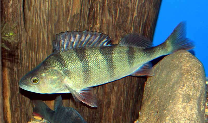 Der Fisch des Jahres 2023 ist der Flussbarsch (Perca fluviatilis L.). Auffällig ist seine geteilte Rückenflosse (bei vielen barschartigen zu finden), die Stachelstrahlen der Rücken- und Afterflosse und die rötliche Färbung der Brust- und Bauchflosse. Er kommt in fast ganz Europa (außer Island, Süd-Griechenland und auf der Iberischen Halbinsel mit Ausnahme der Ebro-Stauseen) vor und ist in Russland, auch im asiatischen Teil, weit verbreitet. Dabei ist er nicht auf einen bestimmten Lebensraum angewiesen und kommt in Fließ- und Stehgewässern, im Brackwasser und in Gebirgsgewässern vor. Der Flussbarsch ernährt sich räuberisch im juvenilen Stadium von Zooplankton, später von tierischen Gewässerbodenlebewesen und im adulten Stadium wird er zum Fischjäger, dabei auch kannibalisch. Sein mageres und grätenarmes Fleisch ist eine Delikatesse. Sein Bestand ist nicht gefährdet.
